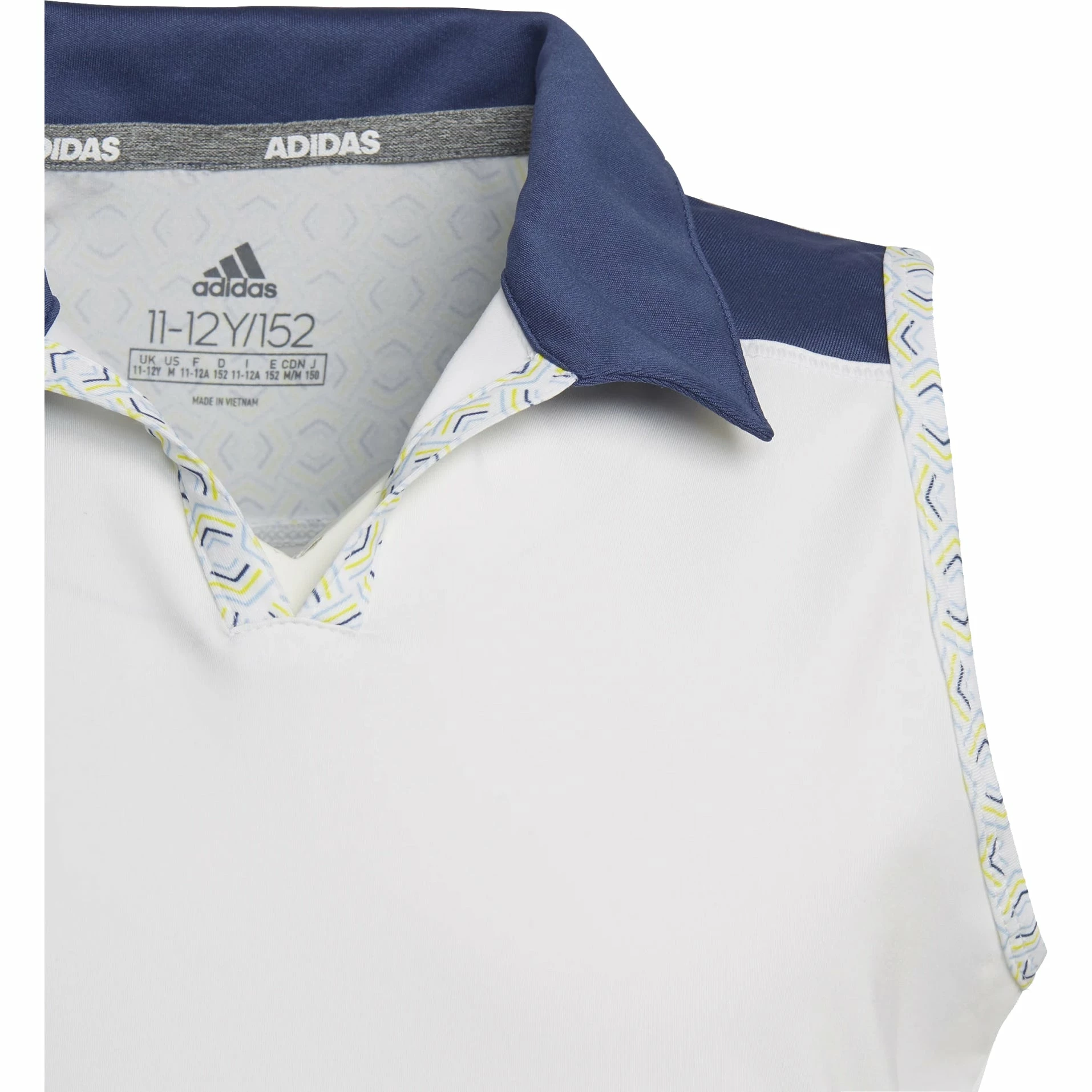 Show off those baby guns on sunny days with the Adidas Printed Colorblock Golf Polo. This girls polo cuts a feminine silhouette with a back graphic and contrast colored neck for a stylish look. The sleeveless cut and stretch knit fabric allow your little golfer to swing easy and comfortably throughout the entire round. There is also a UV 50+ sun rating to keep your little girl protected from the harmful UV rays of the sun.