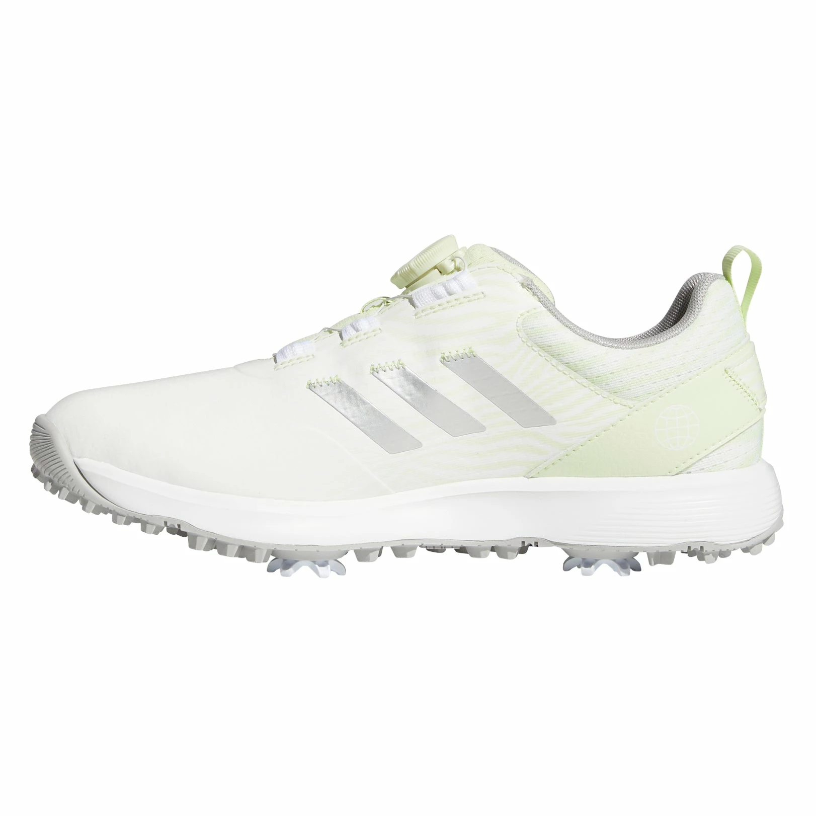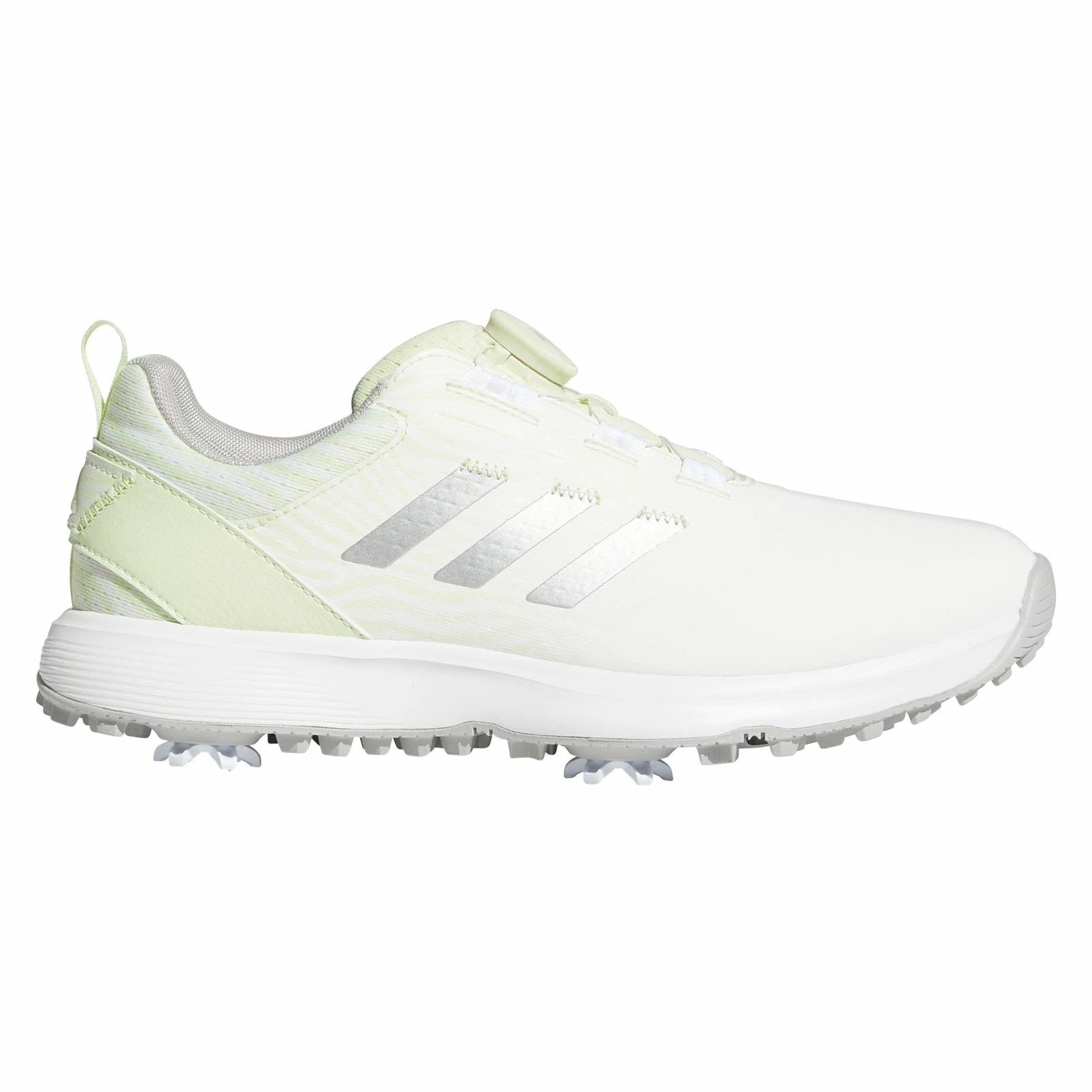 Built for comfort and performance comes the Adidas S2G BOA Golf Shoes. The S2G is built with a minimum of 50 percent recycled content to make these eco-friendly and the waterproof upper will keep your feet dry from morning dew or rain. There is a Bounce midsole that will keep your feet cushioned and flexible for a comfortable round of golf. The S2G features four cleats on a V-Traxion outsole that provides outstanding grip in all-weather conditions and the BOA Fit System allows golfers to dial in a precise fit for even more comfort. The sporty graphic on these shoes will have you looking stylish throughout the round.