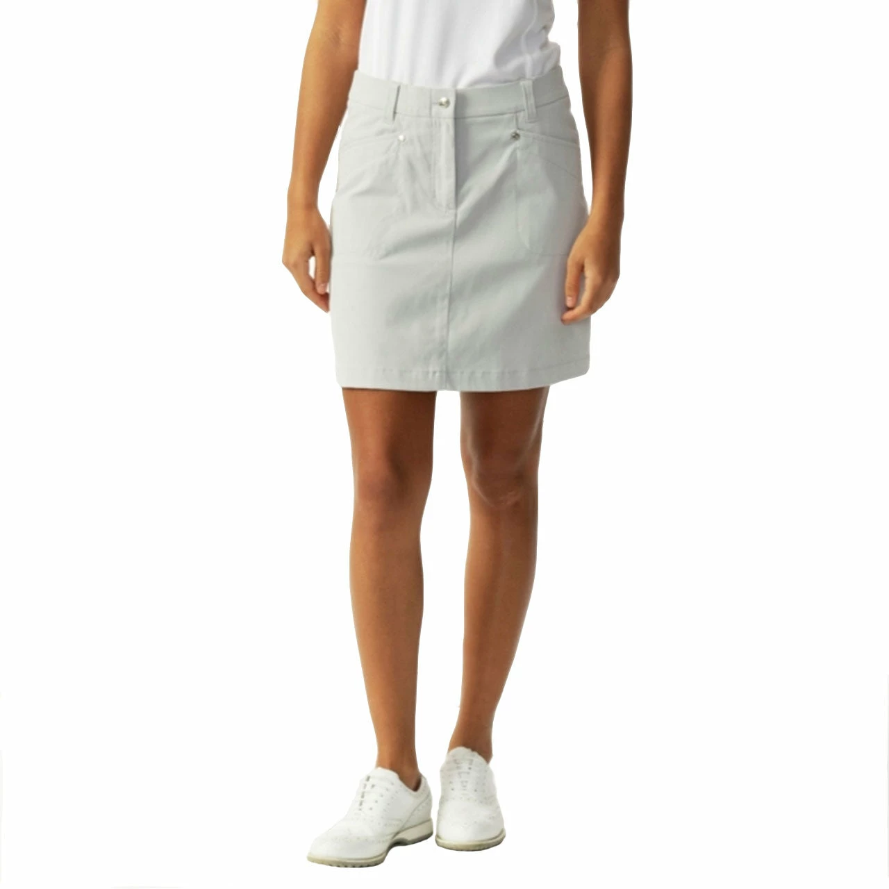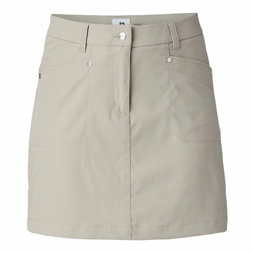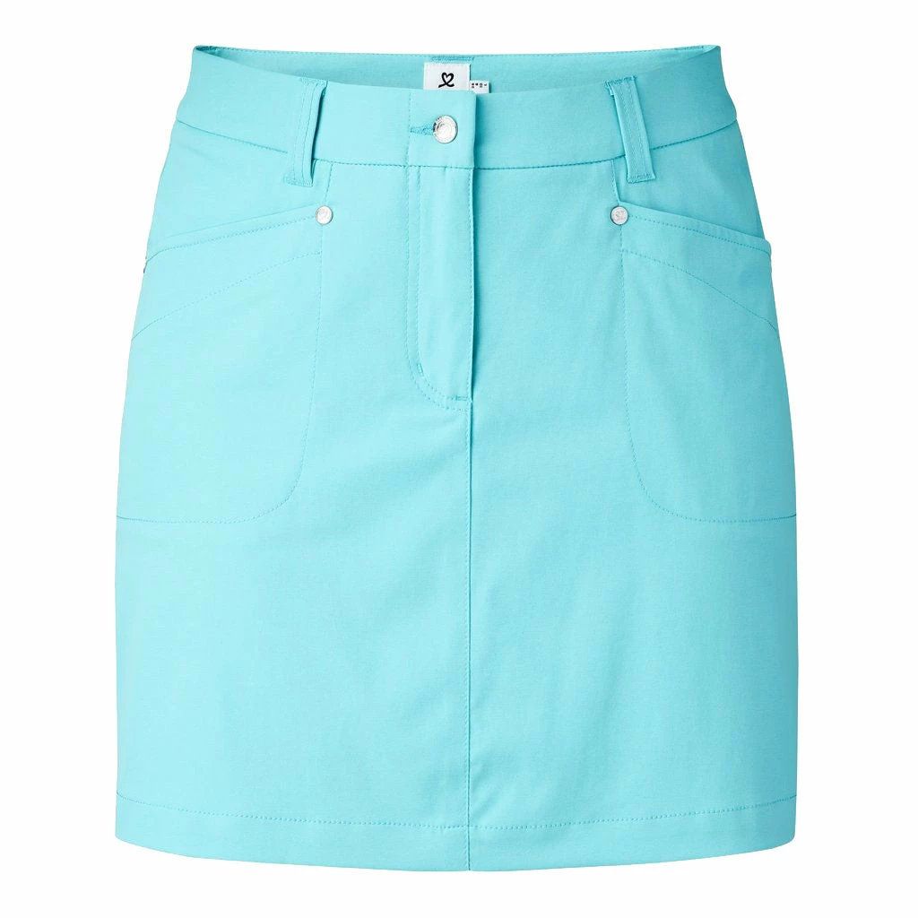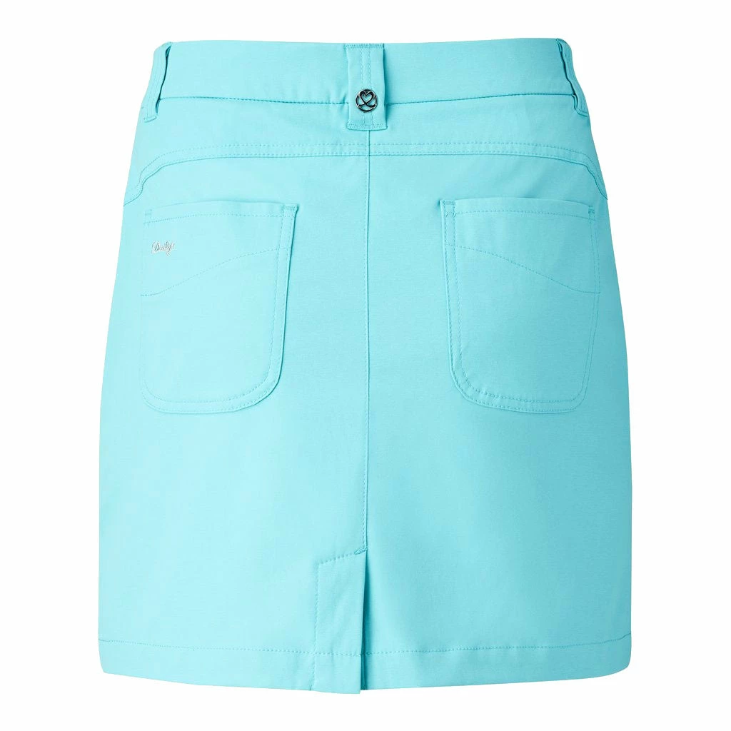 Classic style meets comfort with the Daily Sports Lyric 18in Womens Golf Skort. This skort features a classic, straight cut with an elastic waistband, and buttons for a secure and comfortable fit. There are two front top loading pockets and two back pockets that provide plenty of storage space for balls, tees, and scorecards. The high-tech fabric is water resistant, quick drying, and breathable to keep you feeling and looking your best during your round.
