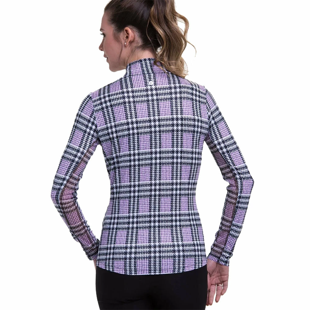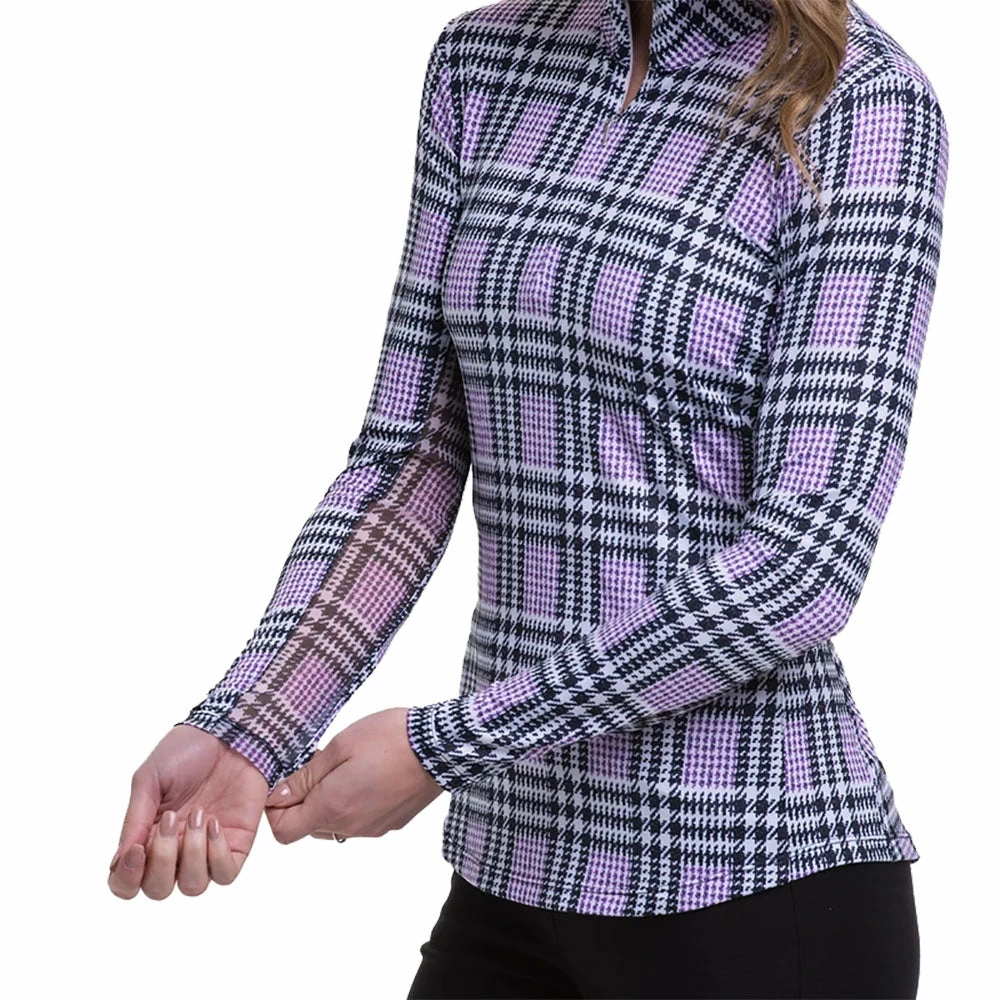 Stay cool and dry out on the course with the EP New York Glen Plaid Mock Womens Golf 1/4 Zip. This 1/4 zip features nano technology crystal cooling and moisture wicking fabric to keep you cool, dry and comfortable all day long. Printed mesh under arm insets provide additional cooling by allowing air to flow through freely. UV 50+ solar tech technology will keep you protected from the sun’s harmful rays so you can focus on your round.