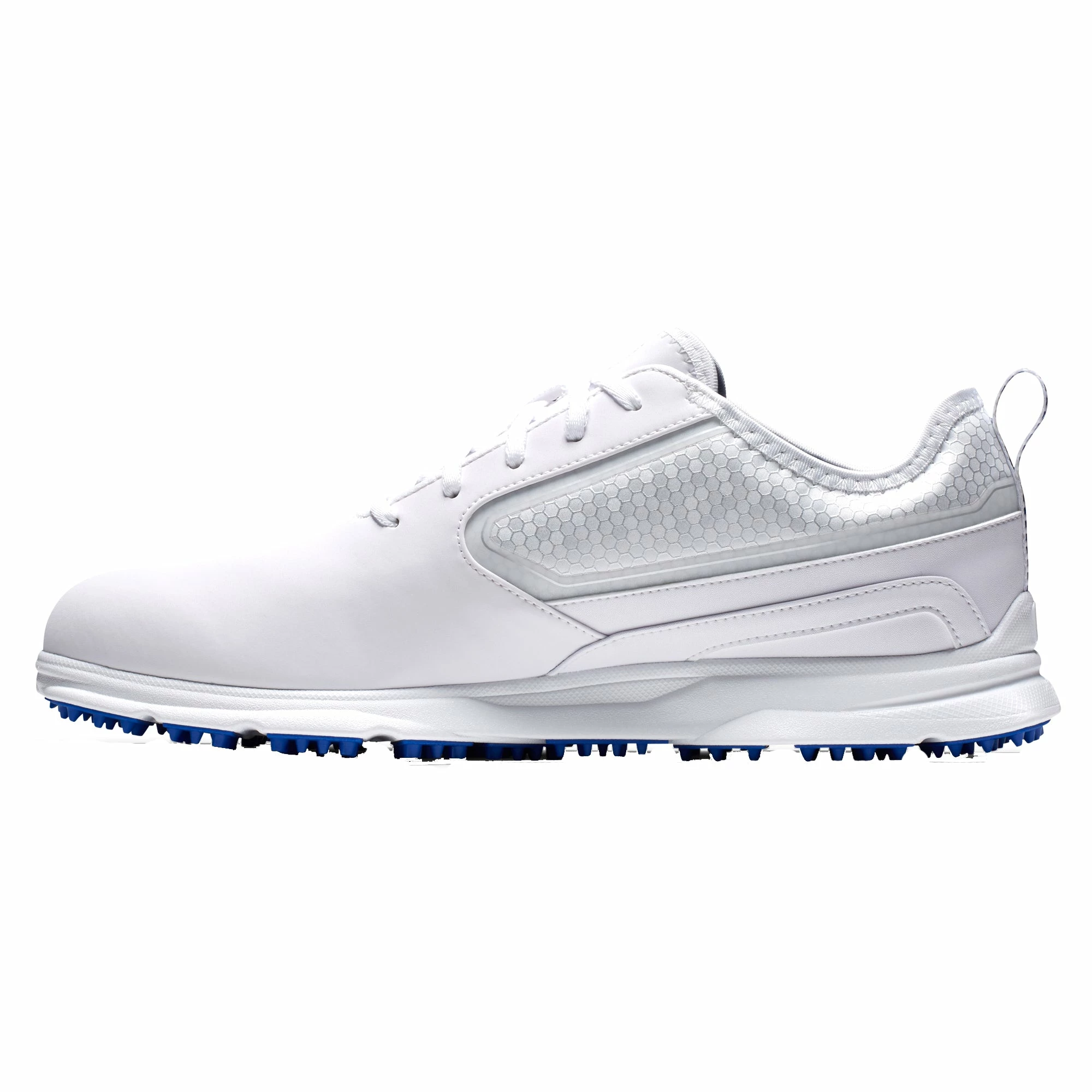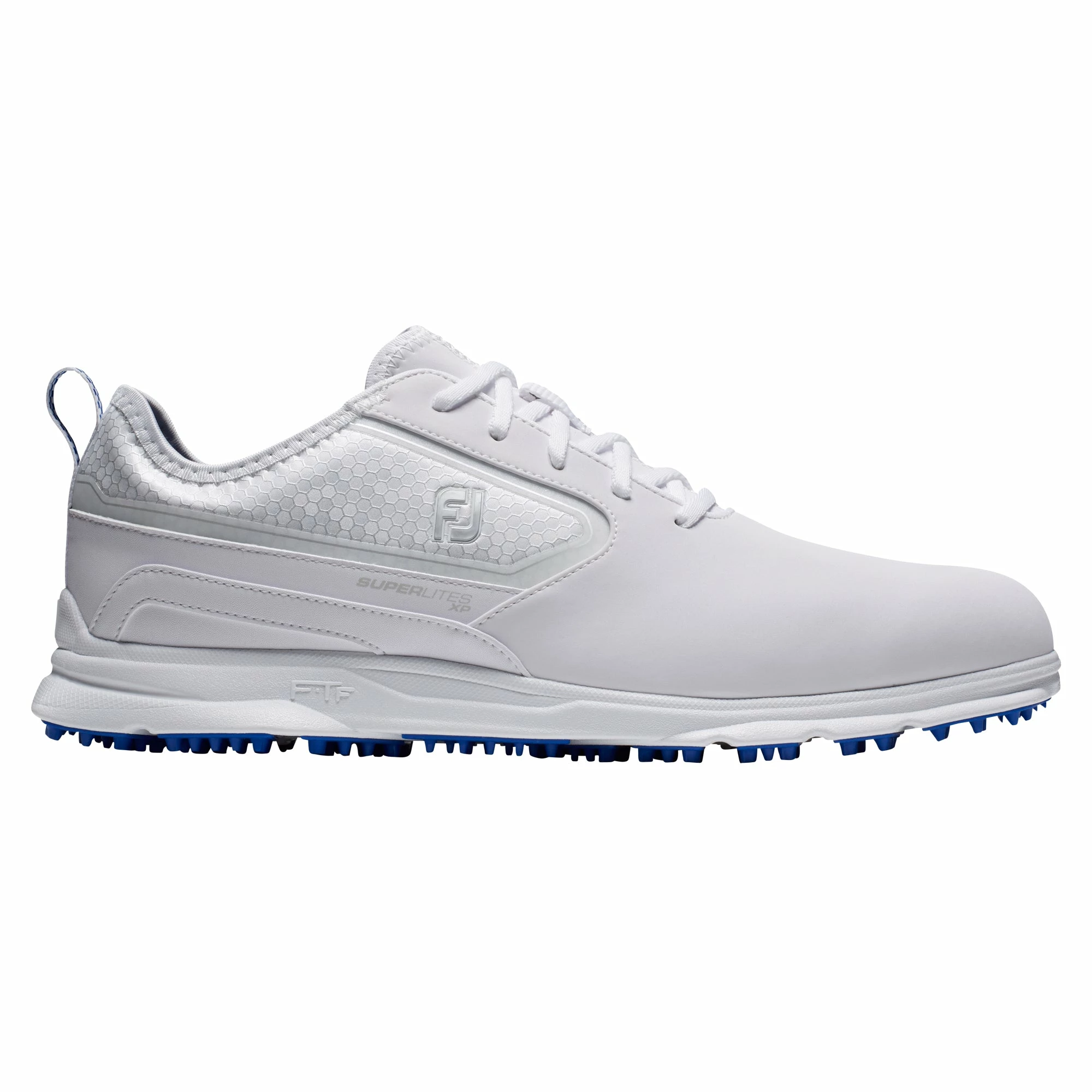 Perfect for summer rounds on the golf course comes the FootJoy Superlites XP Golf Shoes. These shoes are light, flexible and provide 100 percent waterproof protection from morning dew to rain thanks to the performance synthetic leather upper that keep your feet dry and comfortable. The molded high-density EVA FitBed works with a FTF foam to enhance the comfort of this shoe to provide maximum walkability in every round. The Infinity outsole on the Superlites make this the most stable spikeless shoe FootJoy has made and offers golfers the perfect grip and ground contact. The full rounded toe character with its standard fit across the forefoot and instep provide added cushioning.