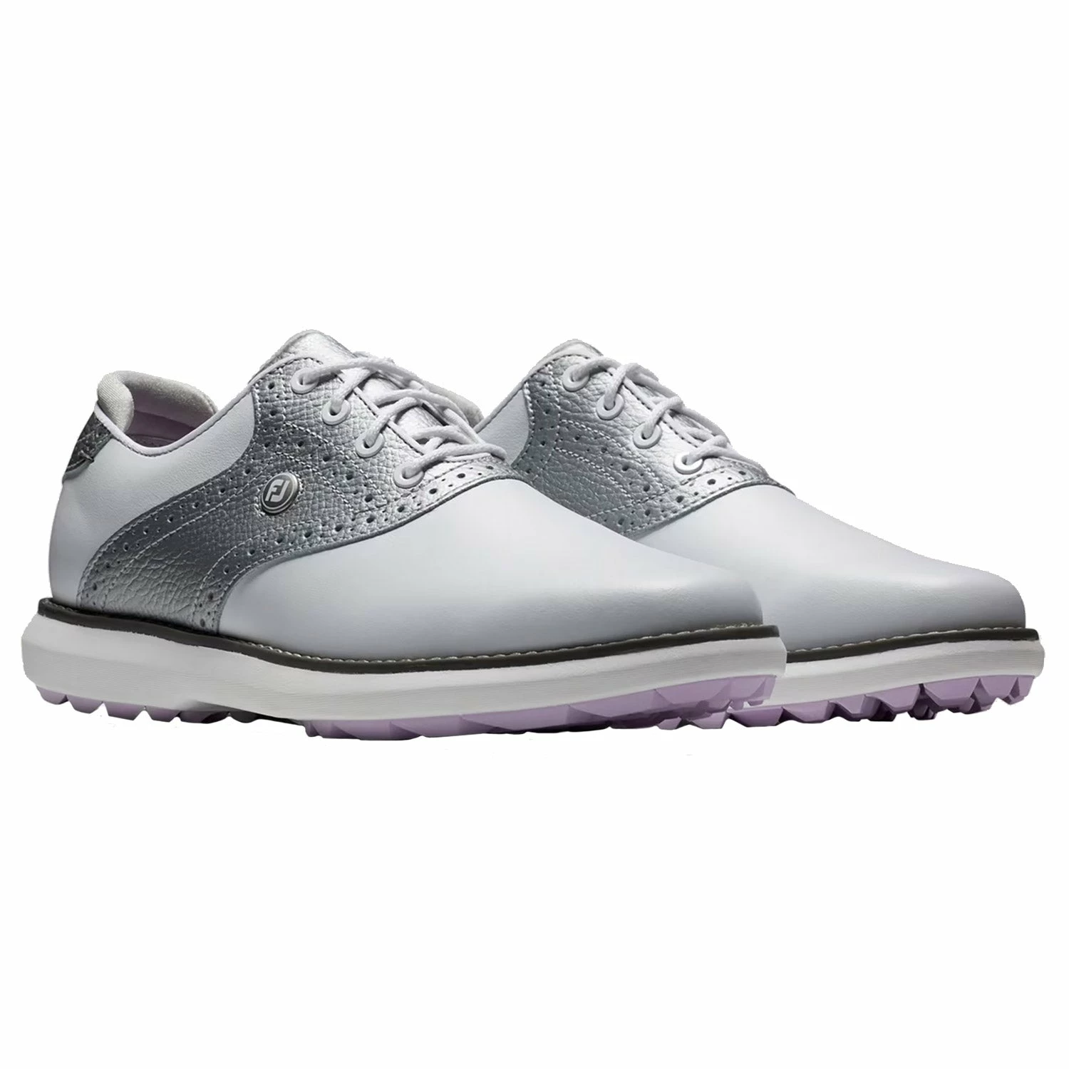 The FootJoy Traditions Spikeless Womens Golf Shoes are known for delivering all day comfort in a classic golf package. The foam midsole provides lightweight comfort for a flexible and comfortable round and works well with the EVA Fit-Bed that keeps your feet comfortable from the first tee to the 19th hole. The fashionable full grain leather upper adds to the comfort and breathability and the Traditions is also 100 percent waterproof to keep your feet dry during every round.