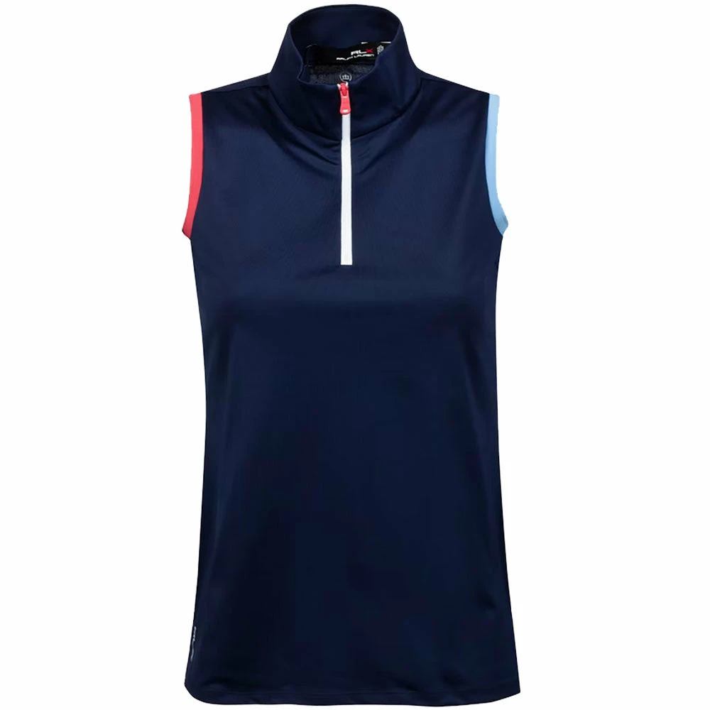 Stay dry and comfortable out on the golf course with the Ralph Lauren Tri-Color 1/4 Zip. This moisture wicking top pulls sweat from the body to keep you dry and comfortable and the Tailored fit with a gently tapered silhouette provides a flattering and stylish look. The 1/4 zip placket allows you to control the coverage and the sleeveless aspect with ribbed armholes adds to the style while also keeping you cool. The RLX logo is printed at the right hem and center back of the neck adds some more subtle styling to have you looking good on the links..