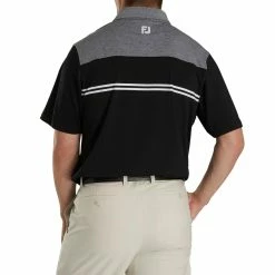 FootJoy Heather Color Block Lisle Self Collar Black Mens Golf Polo