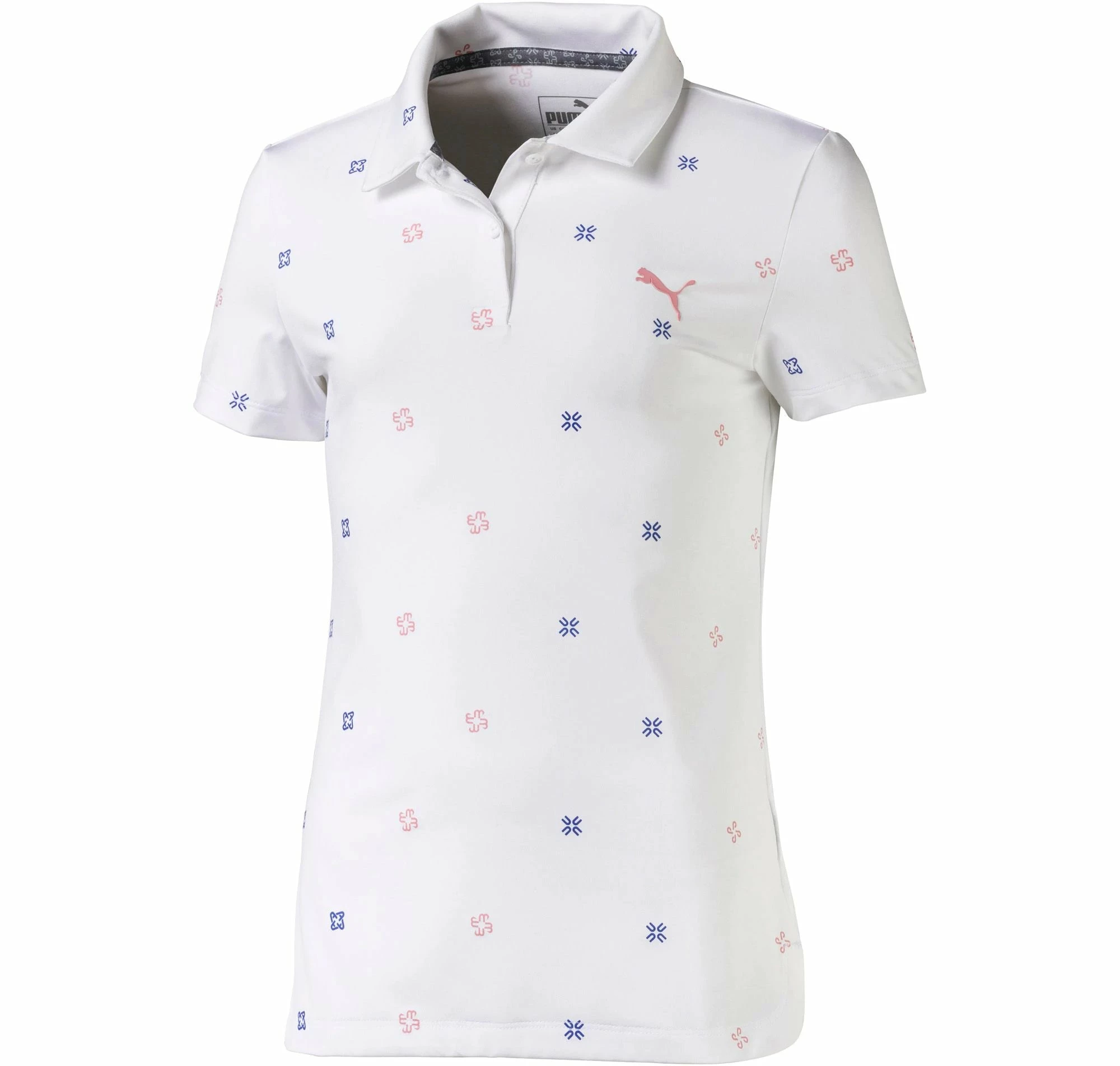 Give your little girl fashion and function with the Puma Ditsy Golf Polo. This polo has a unique all over print for style and its built with a moisture wicking fabric that pulls sweat away from the body to keep her dry and comfortable throughout the round.