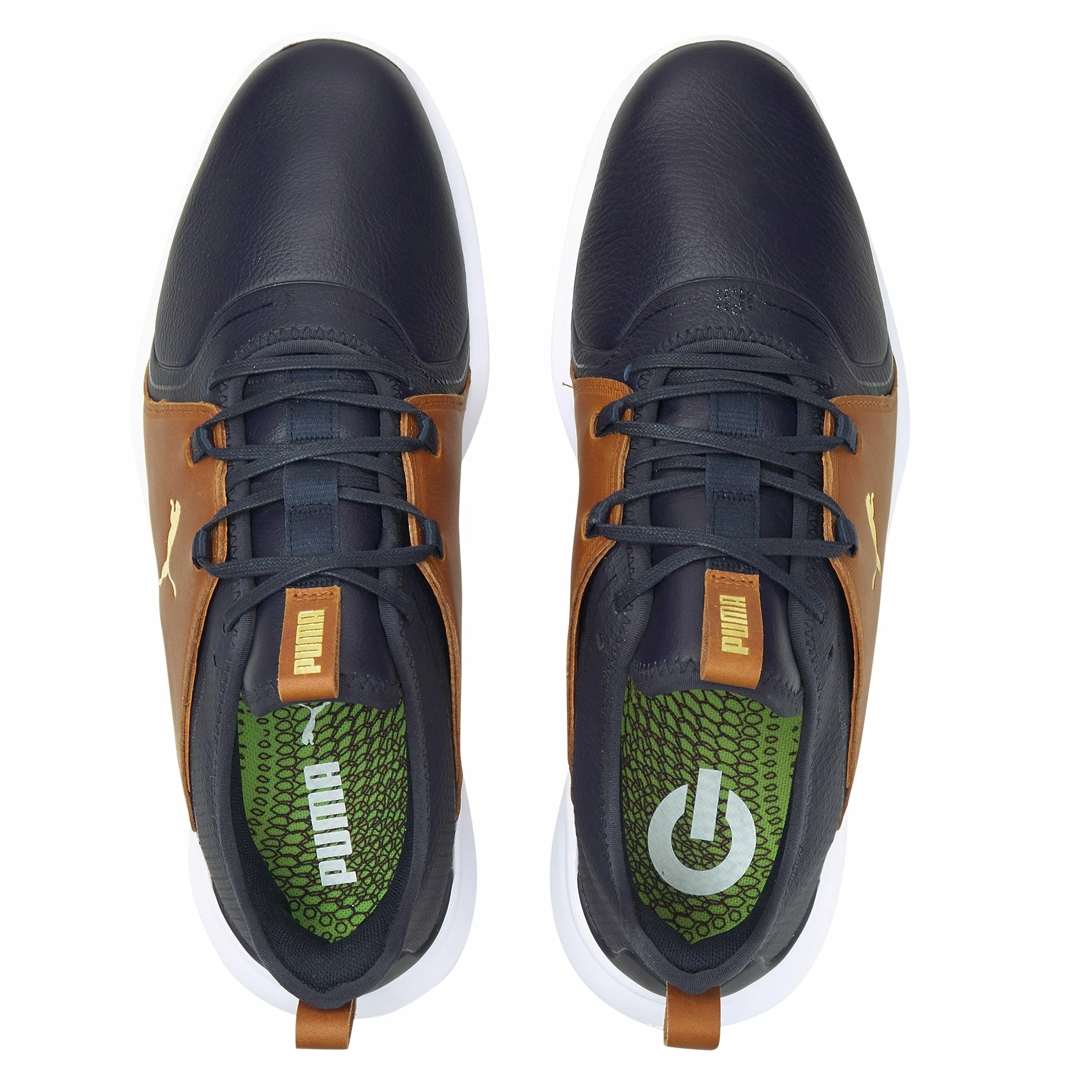 Get a secure, glove-like fit with the Puma Ignite Fasten8 Crafted Golf Shoes. These shoes feature the PWRStrap Fit System that is built with advanced webbing straps which is where the laces are tightened and once tightened the Fasten8 system will wrap around the foot for that glove-like fit. The lightweight PWRCage saddle will integrate seamlessly with the webbing straps to keep golfers stable and planted throughout the entire swing. The organically altered traction provides excellent grip on all surfaces, wet or dry.