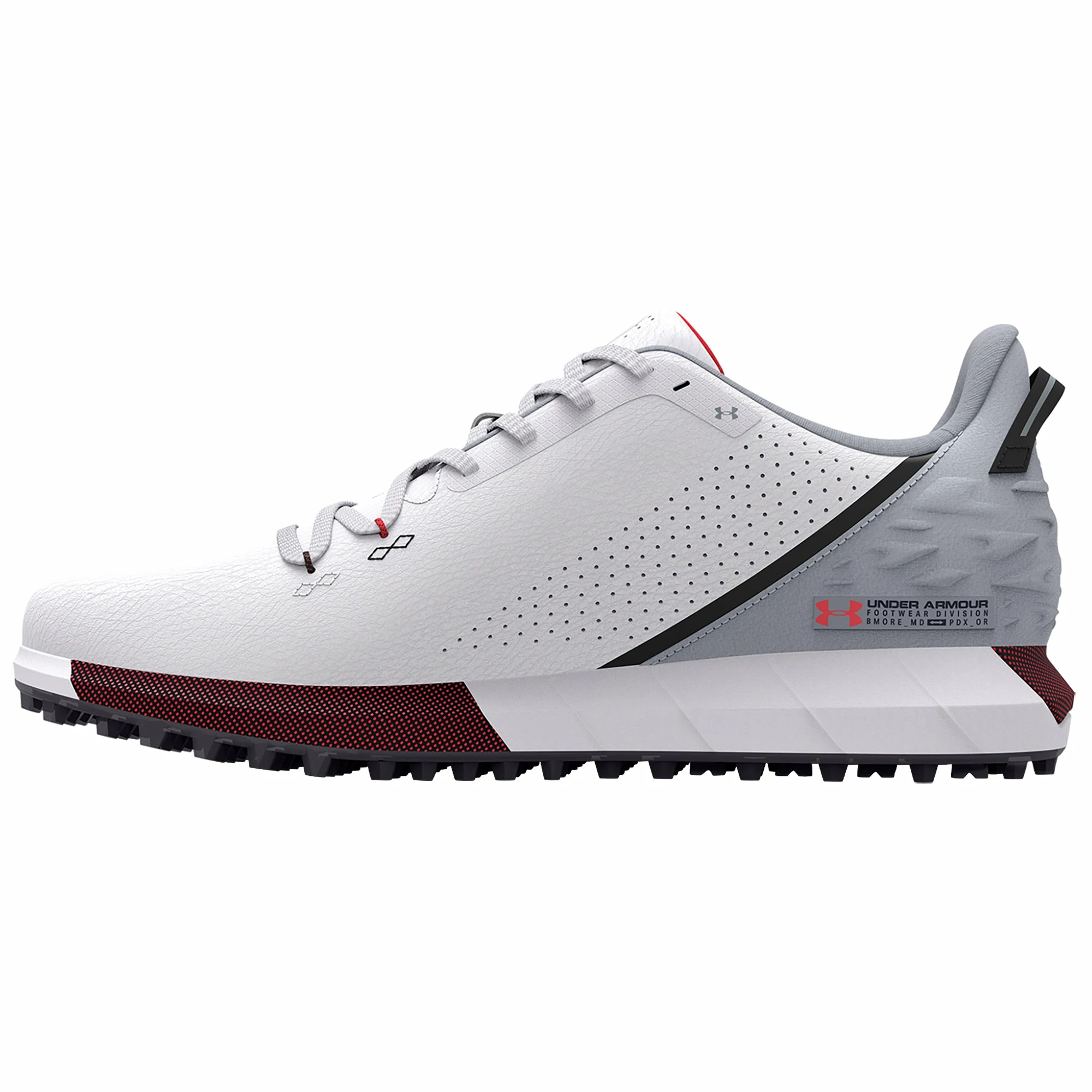 Maintain comfort and focus with the Under Armour HOVR Drive Spikeless Golf Shoes. The HOVR Drive is built with a breathable and engineered microfiber upper with a lightweight waterproof membrane to keep you cool and dry throughout the round. There is a molded heel that is anatomically designed to improve the support and fit and a molded EVA footbed provides out of the box comfort. The UA HOVR placement in these shoes support the natural motion your foot makes during the golf swing and the UA Rotational Resistance outsole offers up lightweight lockdown traction to support your swing. Finally, the TPU spikeless outsole offers a lighter, more flexible feel that will not compromise the traction.