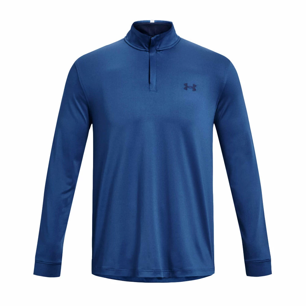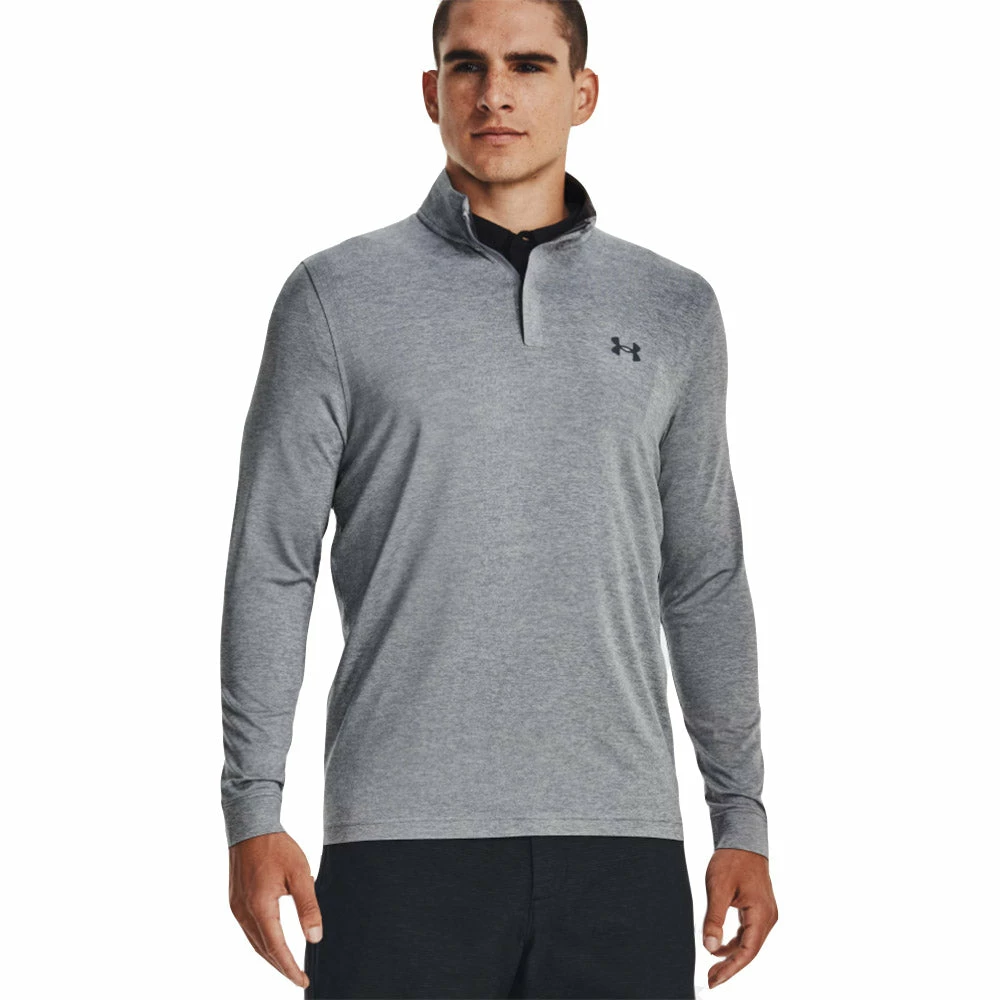 Perfect for any round of golf comes the Under Armour Playoff Golf 1/4 Zip. The Playoff QZ is built with a loose fit and four-way stretch that will move with you for complete comfort throughout the golf swing. The material is also moisture wicking to pull sweat from the body and quick drying to keep you comfortable and dry during the entire round. An anti-odor technology will keep you smelling fresh and a UPF 50+ sun rating keeps you protected from the harmful UV rays of the sun.